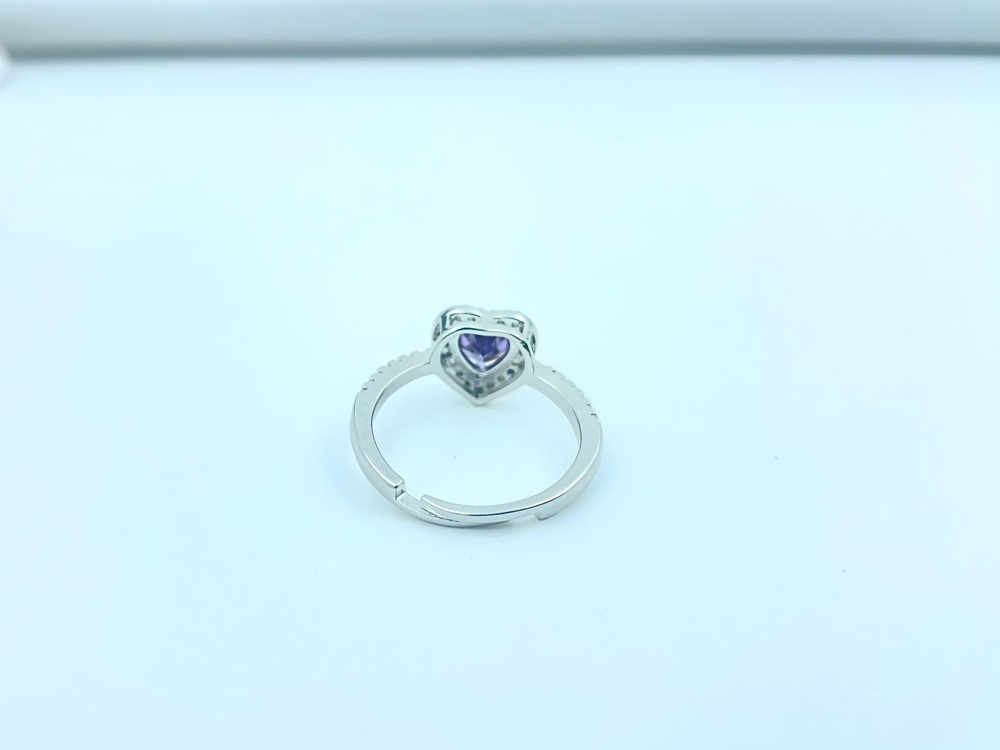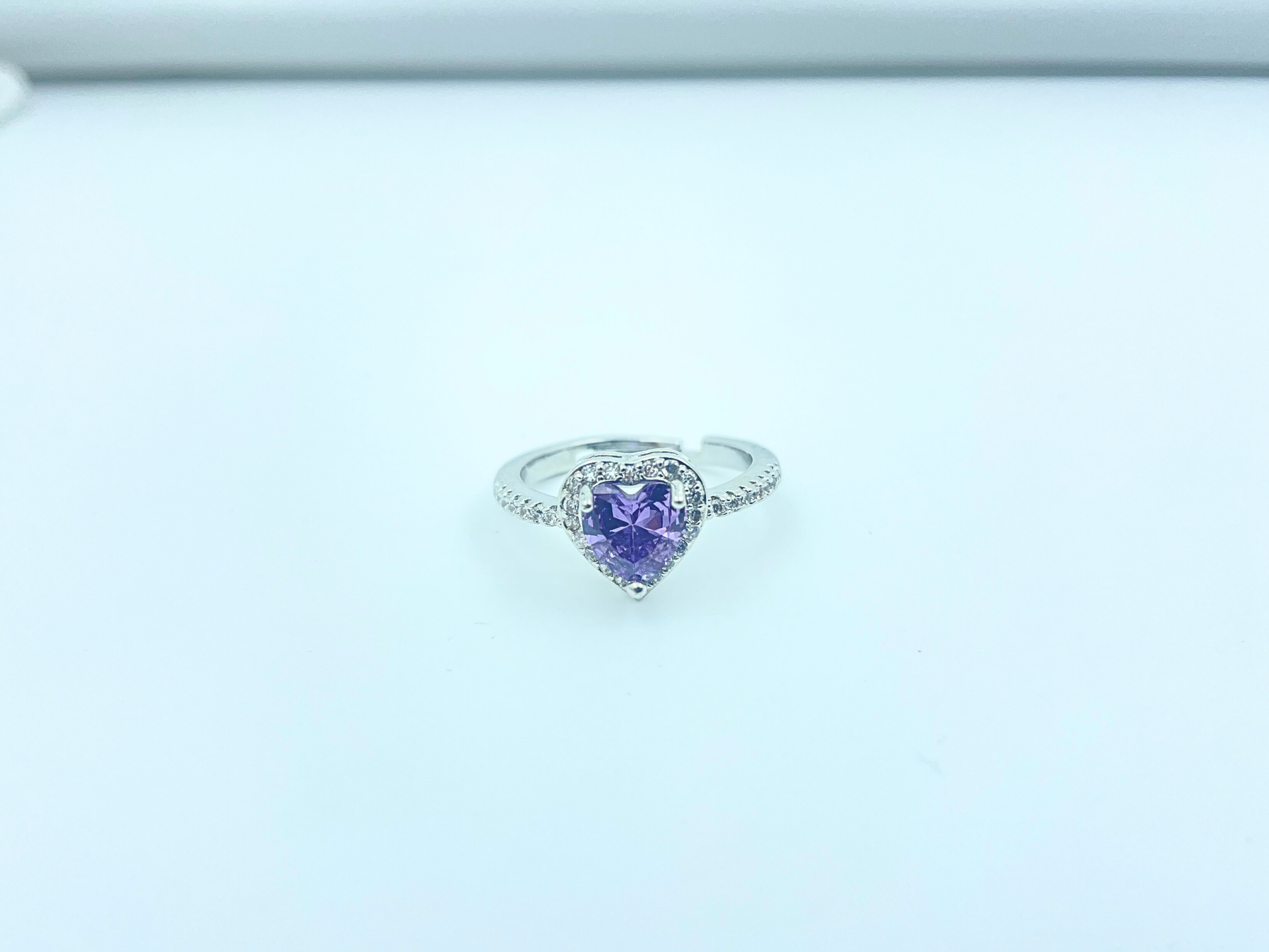 Fall in love with the timeless beauty of the Amethyst Heart Halo Ring. Featuring a radiant heart-shaped purple gemstone at the center, this ring symbolizes romance and elegance. The centerpiece is beautifully surrounded by a halo of sparkling stones, while the delicate band is adorned with additional brilliance, creating a luxurious and refined finish.