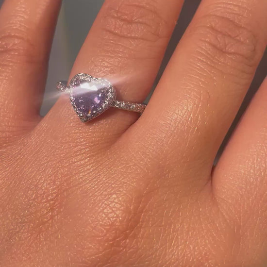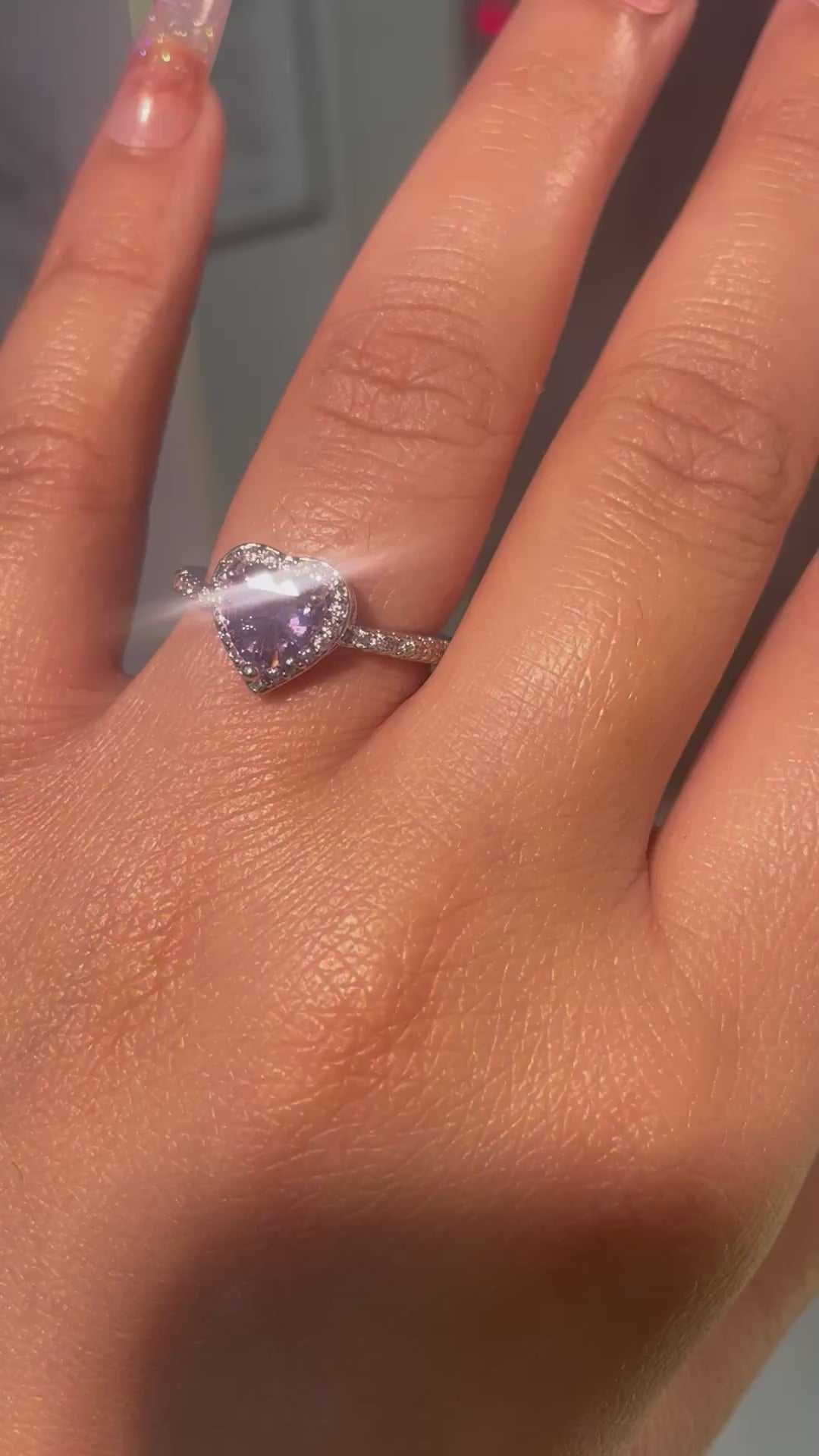 Perfect for those who adore romantic and sophisticated jewelry, the Amethyst Heart Halo Ring is ideal for both special occasions and everyday elegance. Whether gifted as a token of love or cherished as a personal keepsake, it is a meaningful addition to any collection.