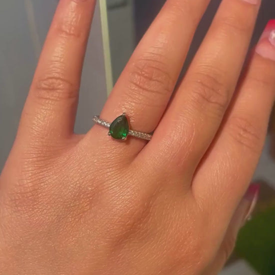 The Aurora Green Ring by 10stone is a celebration of subtle sophistication. Featuring a luminous teardrop-shaped green stone set on a sleek silver-toned band, this ring brings together modern minimalism and timeless elegance.
