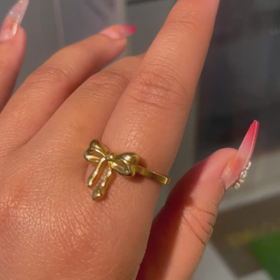Crafted with a gold-tone finish, the Bow Chic Ring offers a refined yet fun look, perfect for adding a bit of sparkle to any outfit. Whether worn alone or paired with other accessories, this ring is a timeless addition to any jewelry collection, ideal for both everyday wear and special occasions.