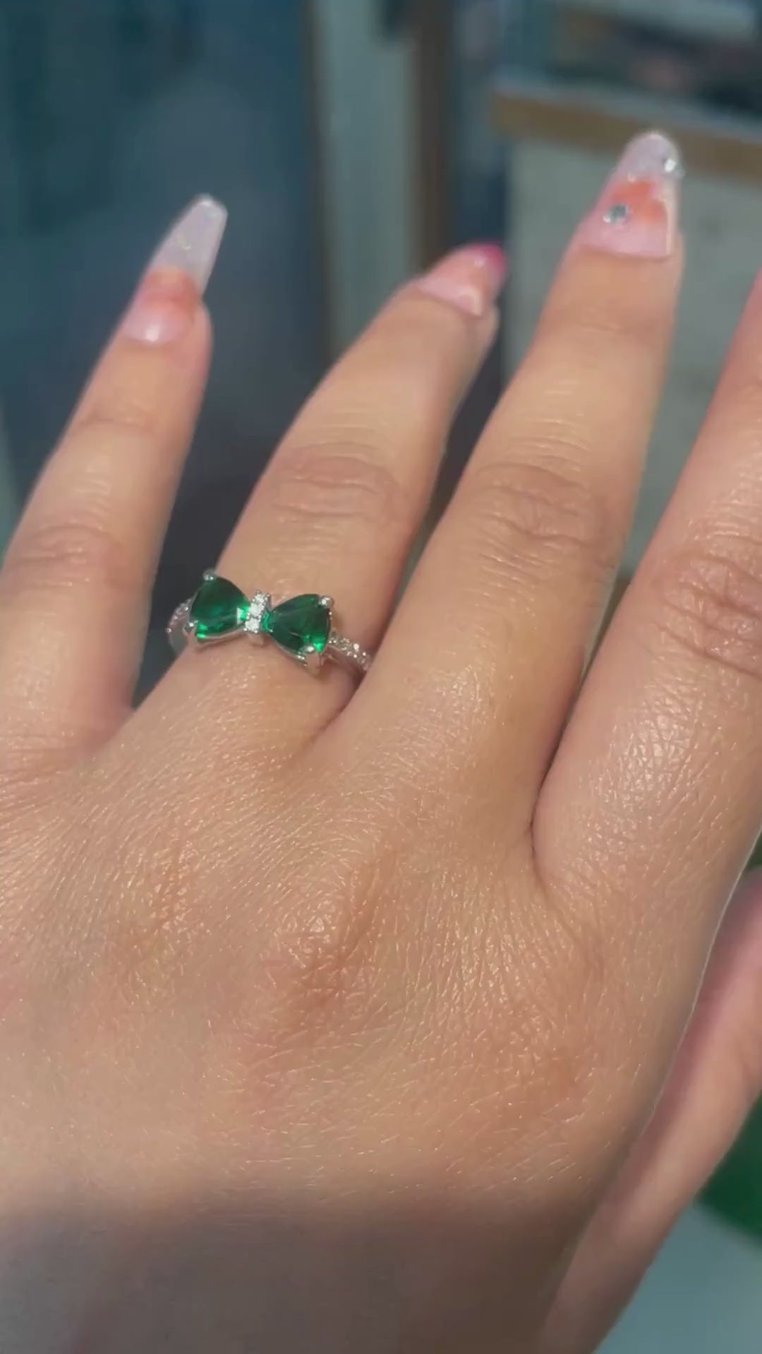 The Emerald Grace Bow Ring by 10stone embodies refined elegance with a playful twist. Featuring two radiant green stones set in a delicate bow-inspired design, this ring reflects the beauty of balance — bold yet graceful, simple yet striking.