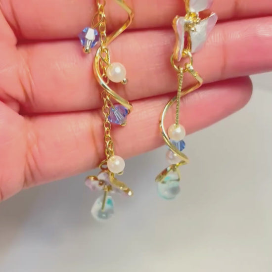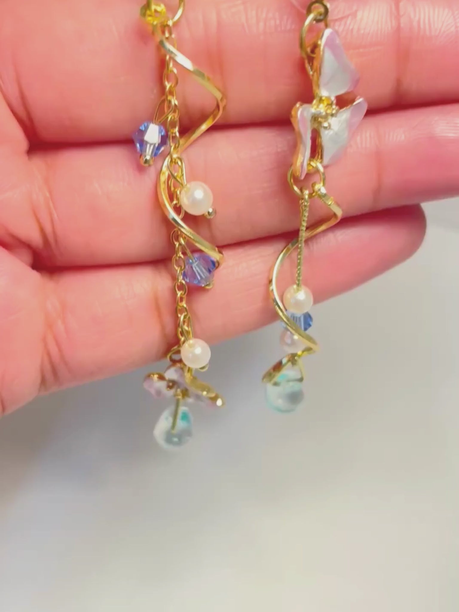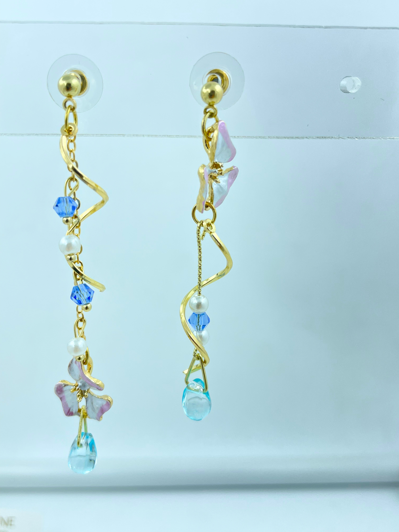 - Design: Asymmetrical gold earrings with crystal accents