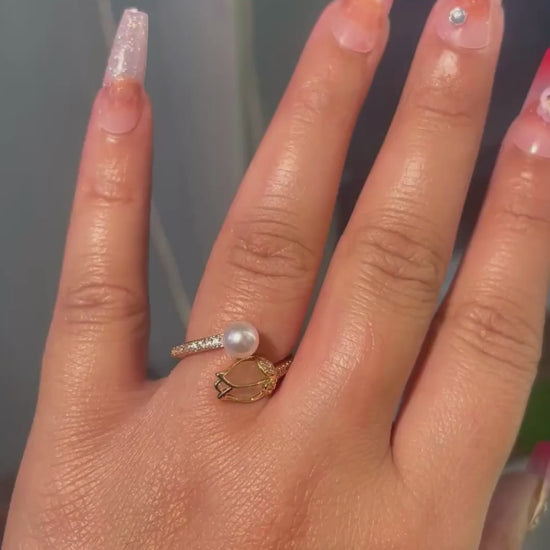 The Luna Leaf Pearl Ring by 10stone is an ode to refined femininity and timeless grace. Designed with a delicate open band that wraps softly around the finger, it features an elegant pearl centerpiece paired with crystal-studded leaf motifs that shimmer with every movement.