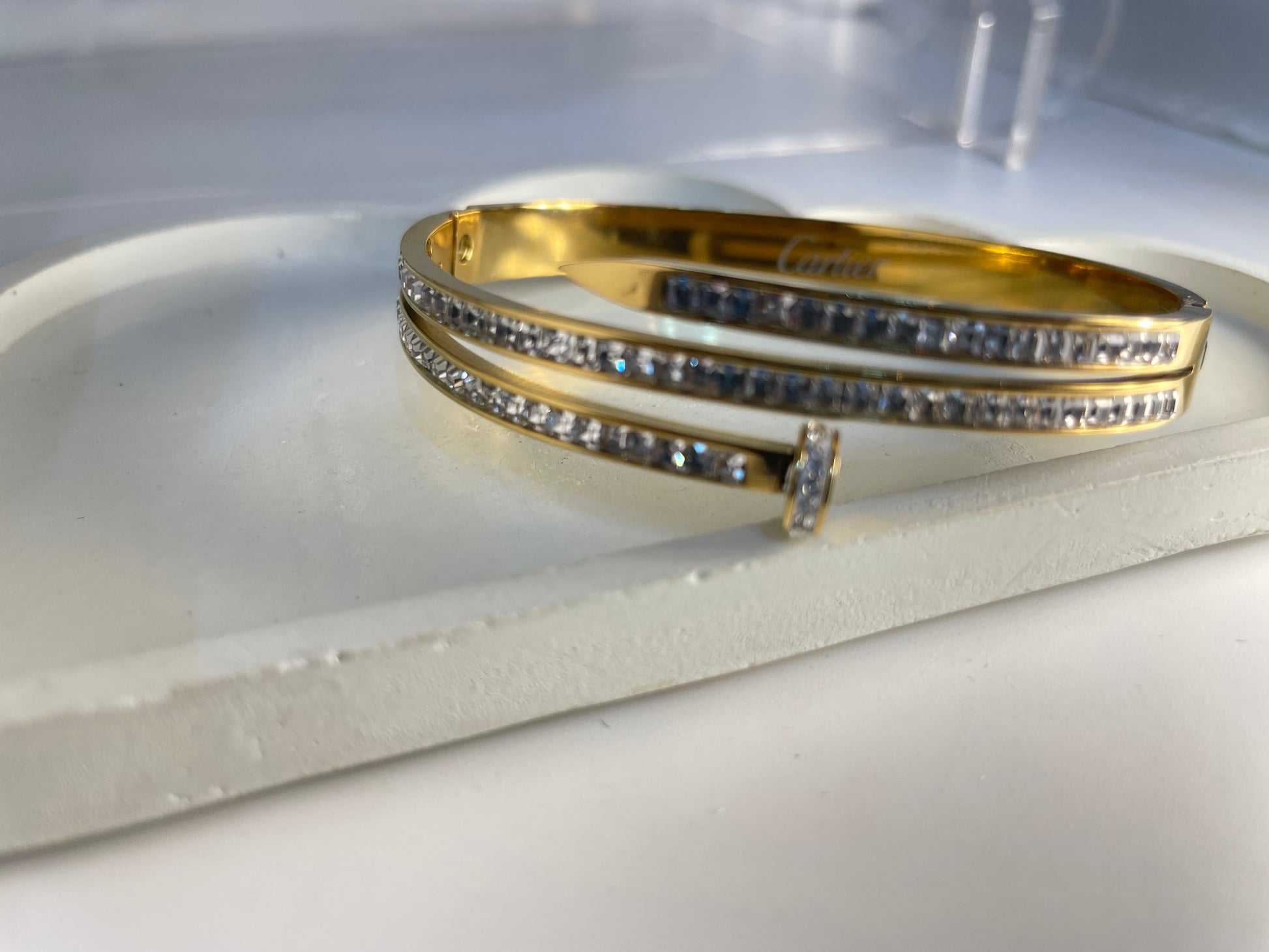 Its sculpted silhouette reflects light from every angle, adding a subtle glow to your look whether worn alone or layered with other statement pieces. Designed for the modern woman who values understated sophistication, this piece transitions effortlessly from day to evening, making it an essential in your luxury jewellery collection.