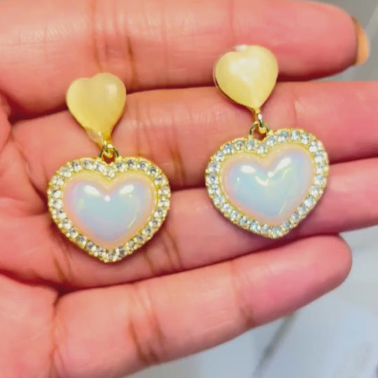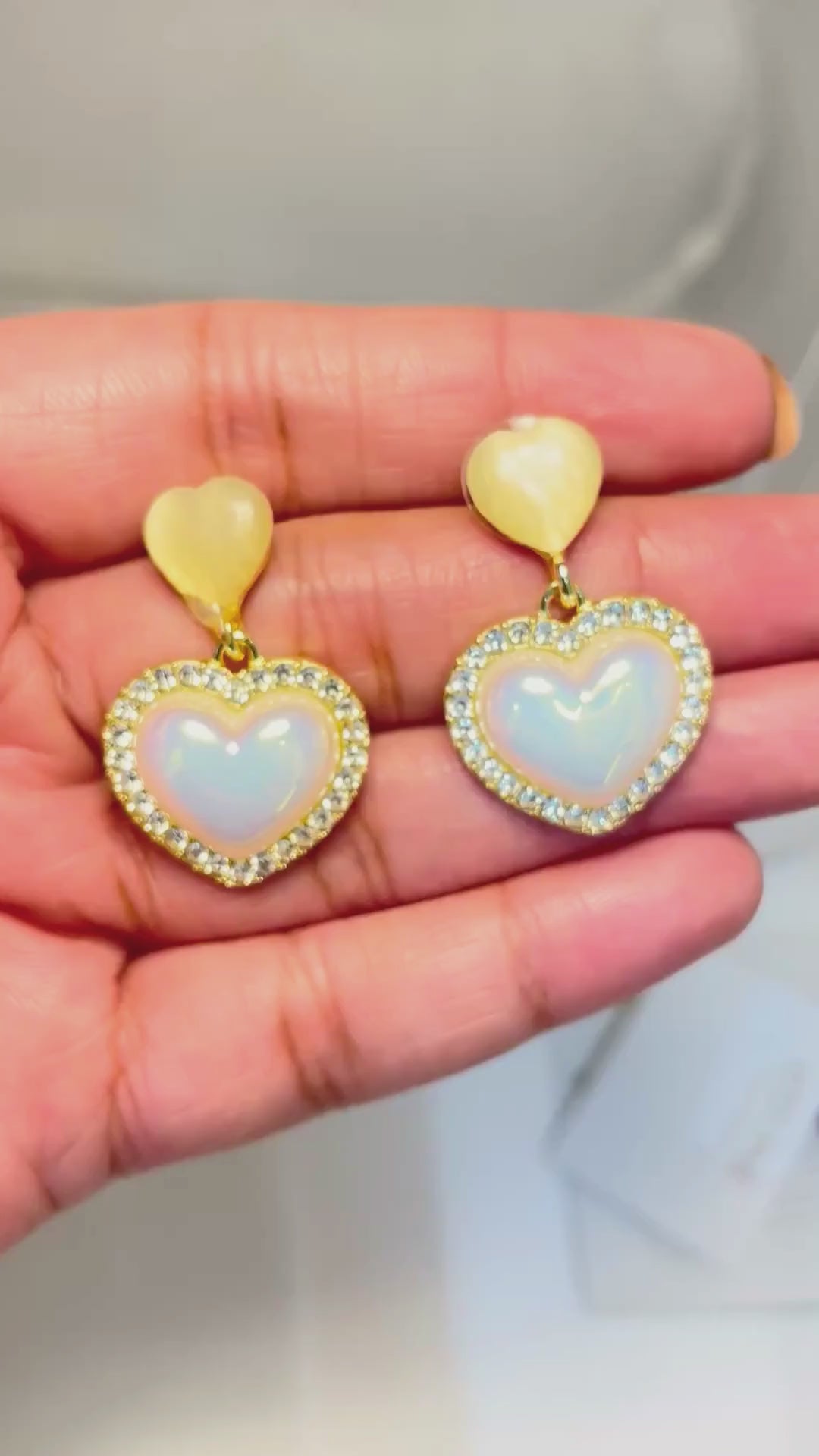 The Opal Heart Glow Earrings by 10stone capture the magic of modern romance with a hint of dreamy elegance. Featuring lustrous opal-toned hearts framed in dazzling crystals, this pair reflects light beautifully, creating a gentle, ethereal glow.